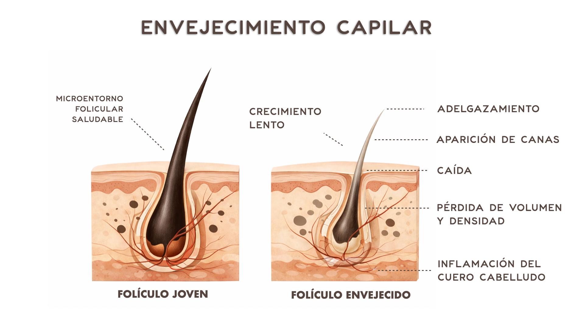 Hair aging doesn't begin with the length of the hair; it begins in the scalp and the biology of the follicle.